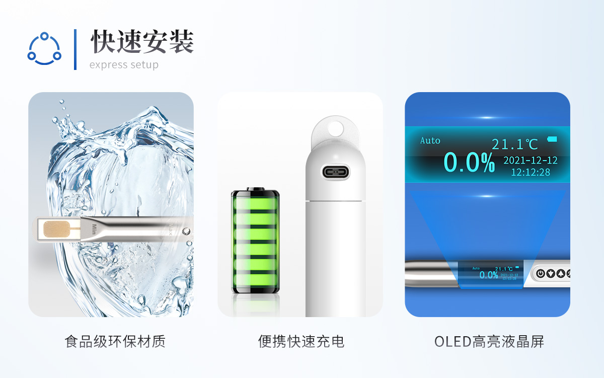 ■沒有二次污染 探頭所選材質(zhì)均為食品級環(huán)保材質(zhì),不會(huì)產(chǎn)生二次污染。